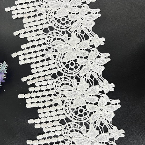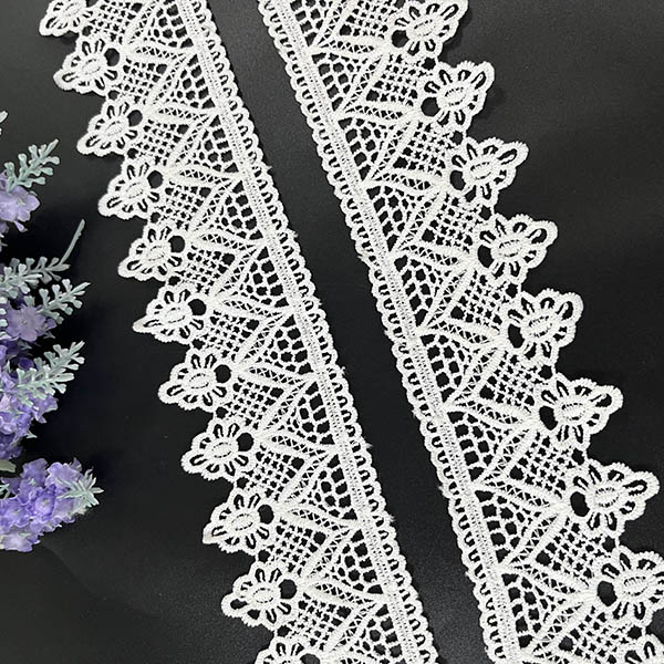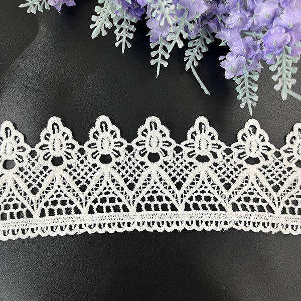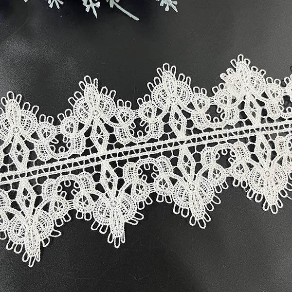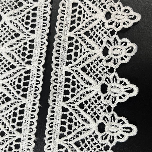 Is monaróir ar scála mór é LB® Baile Átha Troim lása bridal, Is é an lása bridal trim seo na desgins is déanaí de lása ardchaighdeáin. Tá an lása bridal Baile Átha Troim déanta as síoda ceimiceach / bainne, is féidir é a úsáid in éadaí, málaí agus táirgí teicstíle tí.