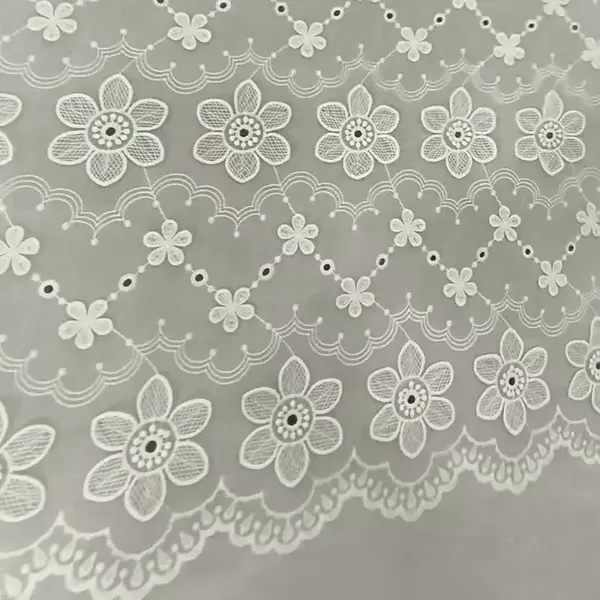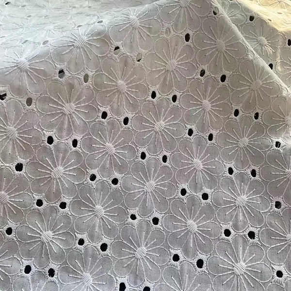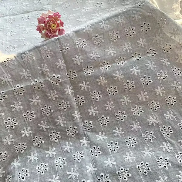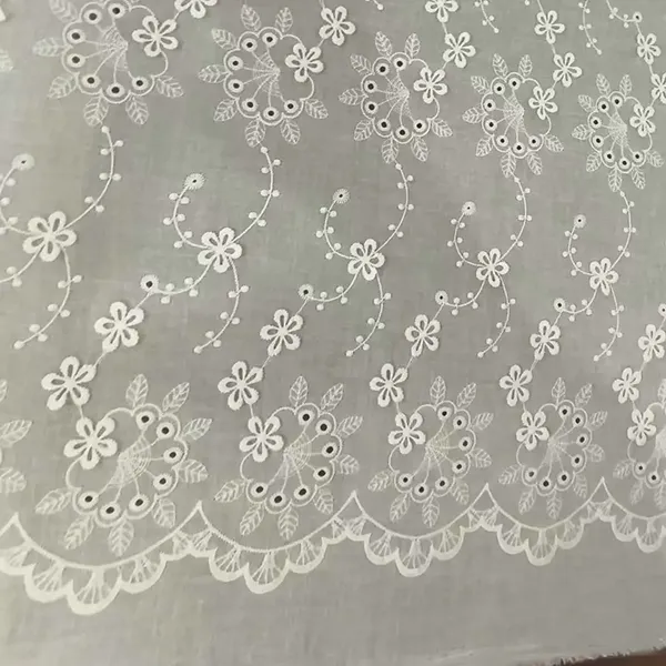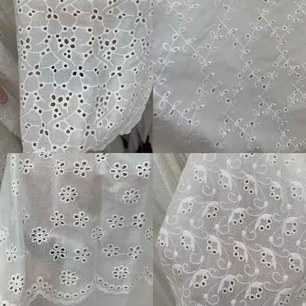 Fabraic Eyelet Lása Lása Bróidnithe Fabraic Eyelet Tá bróidnéireacht íogair eyelet sa bhfabraic lása éadrom, breathable seo, ag tairiscint dearadh mealltach, uigeach foirfe do bhealach an earraigh agus an tsamhraidh. Go hidéalach le haghaidh gúnaí, blúsléinte, cuirtíní, agus ceardaíocht, comhcheanglaíonn sé elegance seanré le compord nádúrtha. Na patrúin eyelet ** OpenWork ** Feabhas a chur ar an aer -sreabhadh agus marthanacht a choinneáil ag an am céanna. Tá an fabraic seo bog, ildánach, agus éasca le sew, is rogha gan uaim é an fabraic seo le haghaidh éadaí agus décor baile. Ar fáil i ndathanna agus i leithid éagsúla, tá sé foirfe do stíleanna rómánsúla, boho, nó clasaiceach.