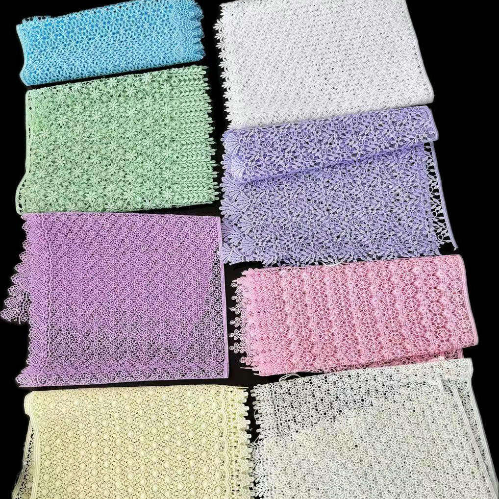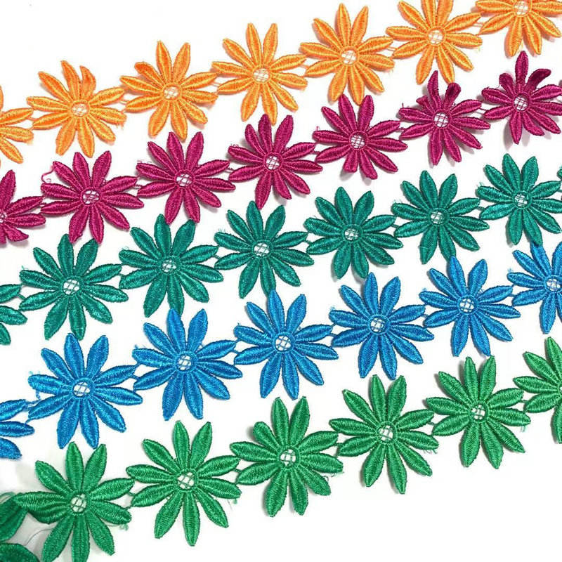 Lása bróidnéireachta lása polyester saincheaptha lása il-dhath déanta as ábhar poileistir ardcháilíochta, le ceardaíocht bróidnéireachta mhín, tá dathanna saibhre agus leithead inchoigeartaithe ann. Tá sé oiriúnach do mhaisiú éadaí ban, éadaí leanaí agus míreanna tí