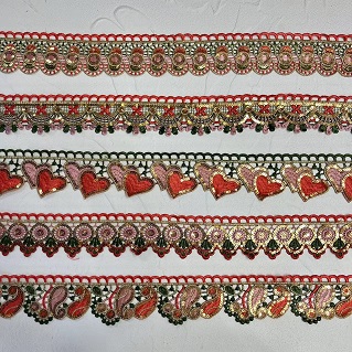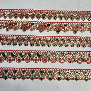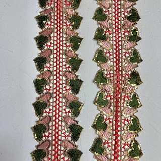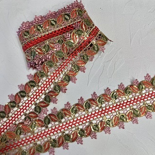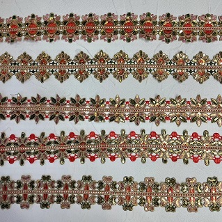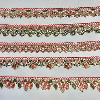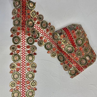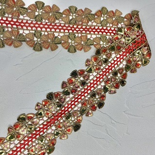 Sequins Órga Is cineál lása lása é lása guipure bróidnithe ildaite a úsáidtear go minic le haghaidh maisiú éadaí. Is iondúil go ndéantar an bearradh lása seo as bonn lása Guipure, atá ina lása trom agus durable atá ar eolas mar gheall ar a uigeacht agus a dhlús ardaithe. Cuirtear an bróidnéireacht ildaite agus na seacainí isteach ar an lása lása i bpatrúin chasta, ag cruthú dearadh álainn.