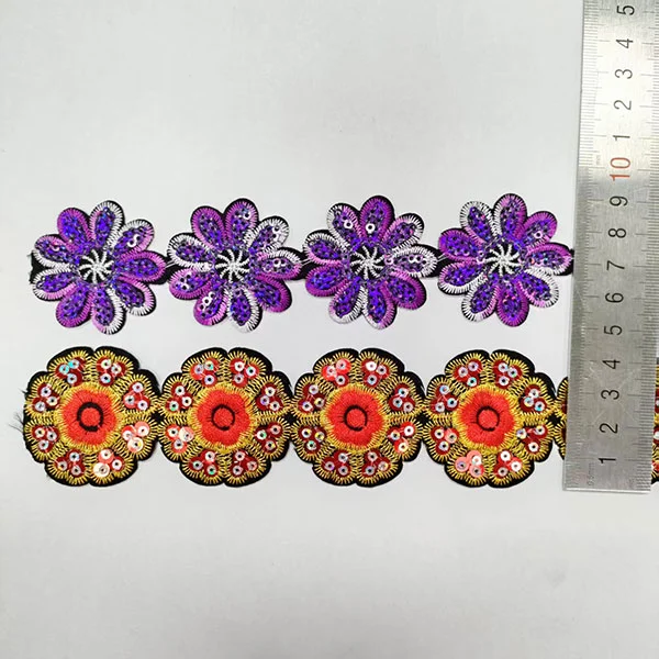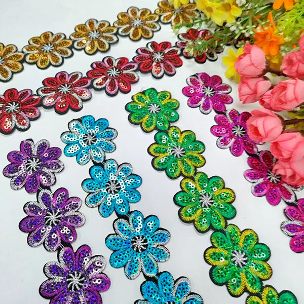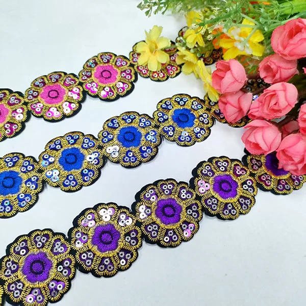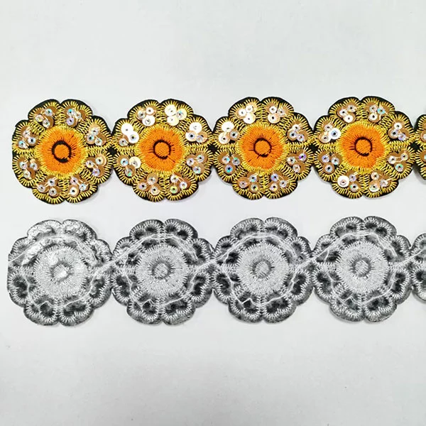 Sequins Accessories Accessories Is cineál bearrtha maisiúla é bearradh lása le gliú cúil ina bhfuil seacainí, lása, agus tacaíocht ghreamaitheach greamaitheach. Fágann sé seo go bhfuil sé éasca é a cheangal le héadaí, gabhálais, nó tionscadail eile gan gá le fuála.
