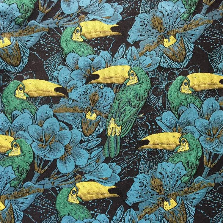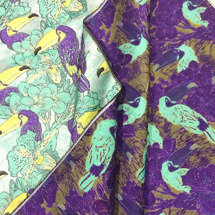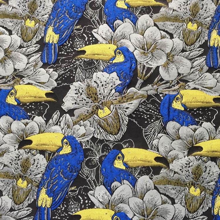 Priontáil teicstíle warp Fabraic bróidnéireachta Jacquard fabraic le haghaidh gúna an teicníc fíneáil Jacquard in éineacht le bróidnéireacht tríthoiseach Tá patrún iomlán agus tríthoiseach. Tá an creatlach bog, drape go maith agus tá sé in ann análú agus cairdiúil don chraiceann. Tá sé oiriúnach do shaincheapadh fallaingeacha tráthnóna, gúnaí féasta, éadaí faiseanta na mban, srl