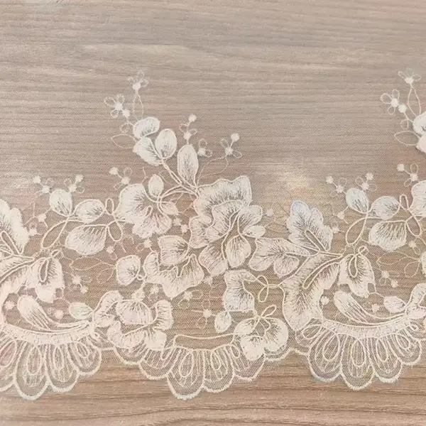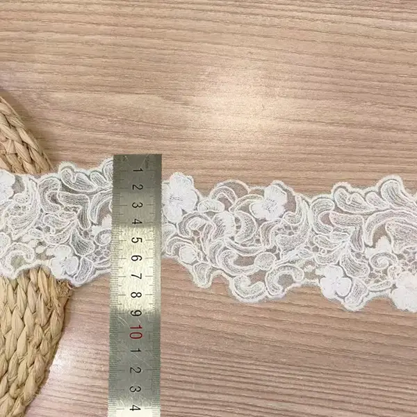 síoda bainne bán 3cm, lása bróidnéireachta intuaslagtha in uisce poileistear Baile Átha Troim