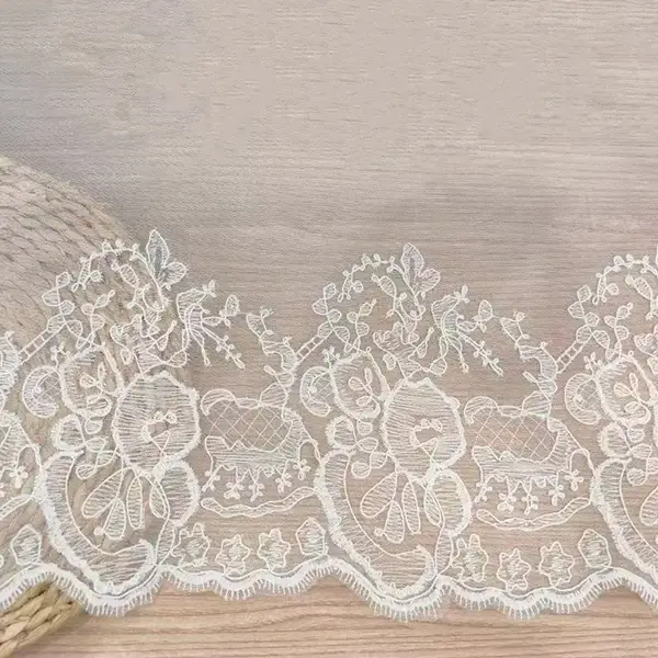 Lása bróidnithe poileistir mogalra fíorálainn clasaiceach le haghaidh éadaí ban ina bhfuil patrúin fhlóra bróidnithe, foirfe do éadaí foirmiúla na mban, faisean bridal, agus forleagan íogair. Tugann an fhabraic éadrom fós durable drape galánta le sofaisticiúlacht gan teorainn. Go hidéalach le haghaidh gúnaí, sleeves, veils, agus lingerie. Ar fáil i Eabhair clasaiceach, dubh, agus bán. Moltar timthriall níocháin láimhe nó meaisín milis. Rogha préimhe do dhearaí couture agus baill éadaigh ócáide speisialta. Díolta ag an gclós ag soláthróirí fabraice speisialtachta.
